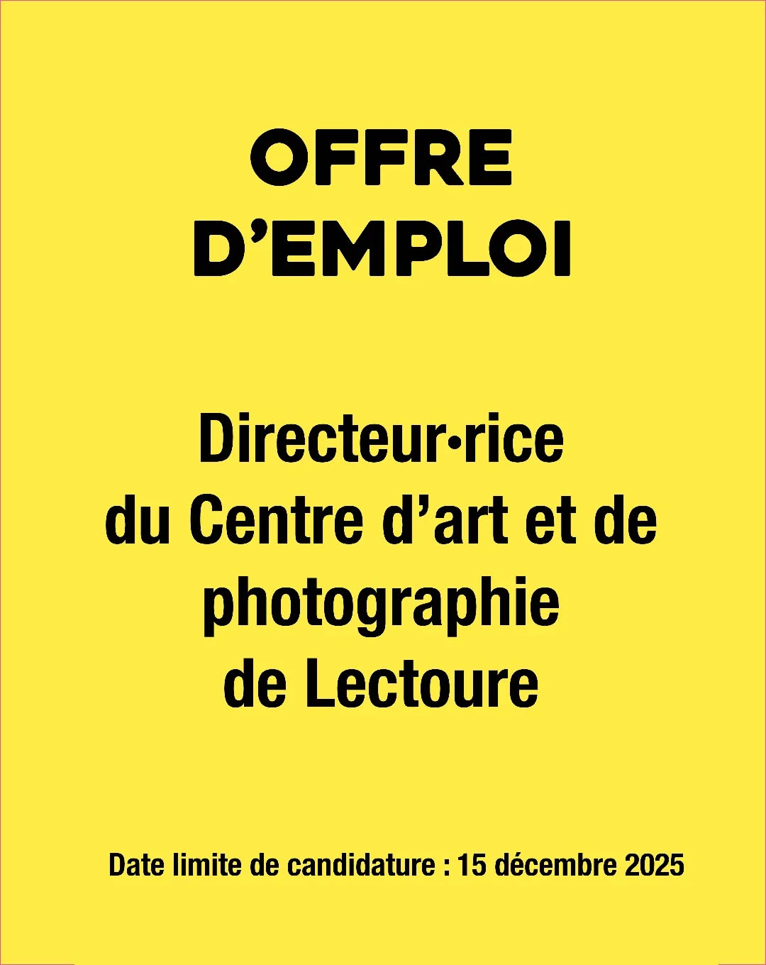 UN.E Directeur.trice Le Centre d’art et de photographie de Lectoure recherche sa nouvelle direction pour développer son projet artistique et culturel d’intérêt général en faveur du soutien à la création, à la production et à la diffusion des arts visuels contemporains. CV détaillé et lettre de motivation à envoyer à association@centre-photo-lectoure.fr >> L’offre d’emploi est a…